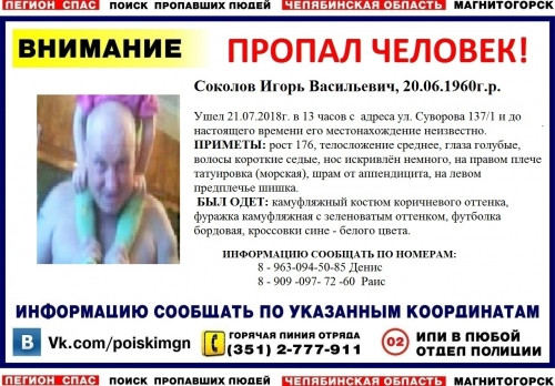 Магнитогорск. Последний раз Игоря Соколова видели 21 июля.