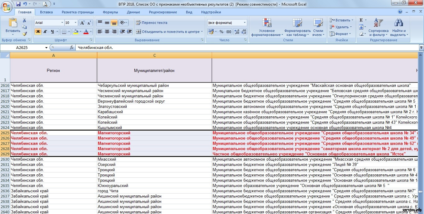 В Челябинской области насчитали 88 образовательных учреждений школ, где работы учащихся, по мнению ревизоров, оценивались необъективно. Большинство образовательных учреждений, попавших в черный список Рособрнадзора, находятся в Челябинске (1 лицей и 13 школ). На втором месте по числу выявленных фактов завышения оценок ученикам оказался Агаповский район (6 школ), третью и четвертую позицию занимают Магнитогорск и Кизильский район (по 5 образовательных учреждений).