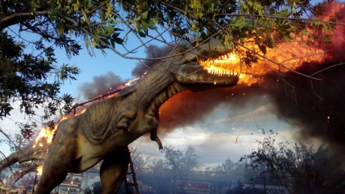 Как сообщает сайт ufa1.ru, динозавр по произвищу Рекс загорелся днем в парке в Сибае, когда там были посетители. Сотрудники развлекательного центра бросились тушить «древнее» животное, но не смогли – громадная фигура сгорела дотла. Когда приехали пожарные, от динозавра остался один каркас. Никто из посетителей не пострадал.