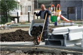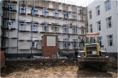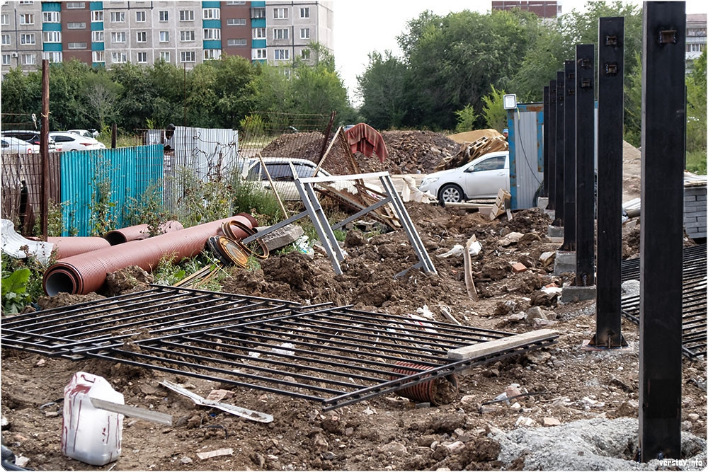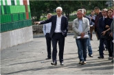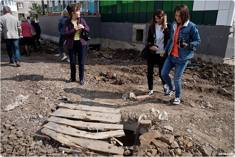 Далее комиссия из чиновников и представителей подрядчика и субподрядных организаций прошла вокруг школы. Картина с обратной стороны здания главу не порадовала. Здесь еще предстоит огромный объем работ по благоустройству. Собственно, 27 августа территория представляла собой горы земли, щебня, песка и строительного мусора. Также удивило Сергея Бердникова небольшое число работников на объекте.
