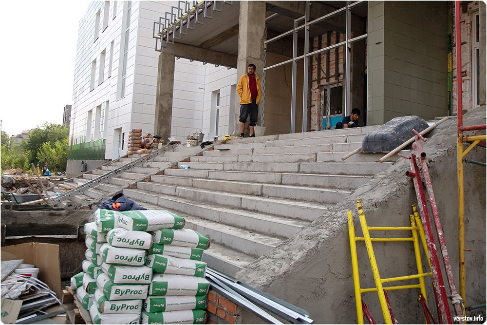 Пока же работы на объекте очень много. Как снаружи, так и внутри здания. Глава прошел по всей территории, по всем этажам, нашел массу недоделок и недочетов. Именно поэтому в беседе с подрядчиком Сергей Бердников был порою резок.