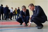 Внутри здания чистовая отделка практически закончена. Учителя отмывают полы, рабочие собирают мебель. Глава прошел по всем этажам и даже заглянул на крышу. В помещении бассейна, несмотря на отсутствие электричества, при свете фонарика осмотрел душевые, выявил недочеты. Тут же потребовал остановить оплату организации, выполнявшей работу и отправить претензию. Не понравились Сергею Бердникову и слишком высокие выключатели возле одного из кабинетов. Не законченными оказались работы в актовом зале, спортивном зале, в кабинетах и технических помещениях не смонтировано оборудование.