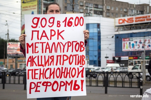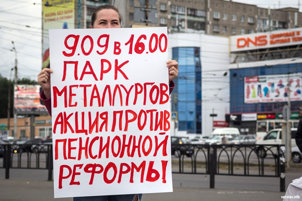 Магнитогорск. Вчера, 5 сентября, в городе прошли одиночные пикеты. Молодые люди анонсировали акцию против пенсионной реформы, которую хотят провести 9 сентября.