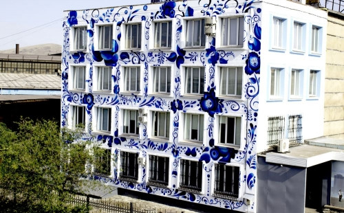 Очередная работа. Магнитогорские художники расписали здание под гжель