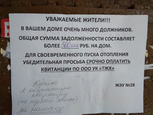 Добавим, что в Магнитогорске некоторые управляющие компании стали развешивать на подъездах объявления, в которых говорится, что для своевременного пуска отопления коммунальщики убедительно просят погасить долги.