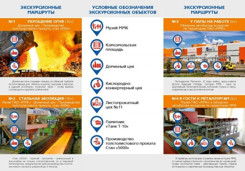 Магнитогорск включён в кластер промышленного туризма в рамках федеральной программы Ростуризма с 2019 по 2025 годы. Маршруты по промплощадке ММК проработаны с учётом безопасности, информационной насыщенности и зрелищности. В перспективе на ММК будут открыты новые маршруты. Подробнее ознакомиться с действующими маршрутами и оставить заявку на экскурсию можно здесь: https://mmk-tour.ru/