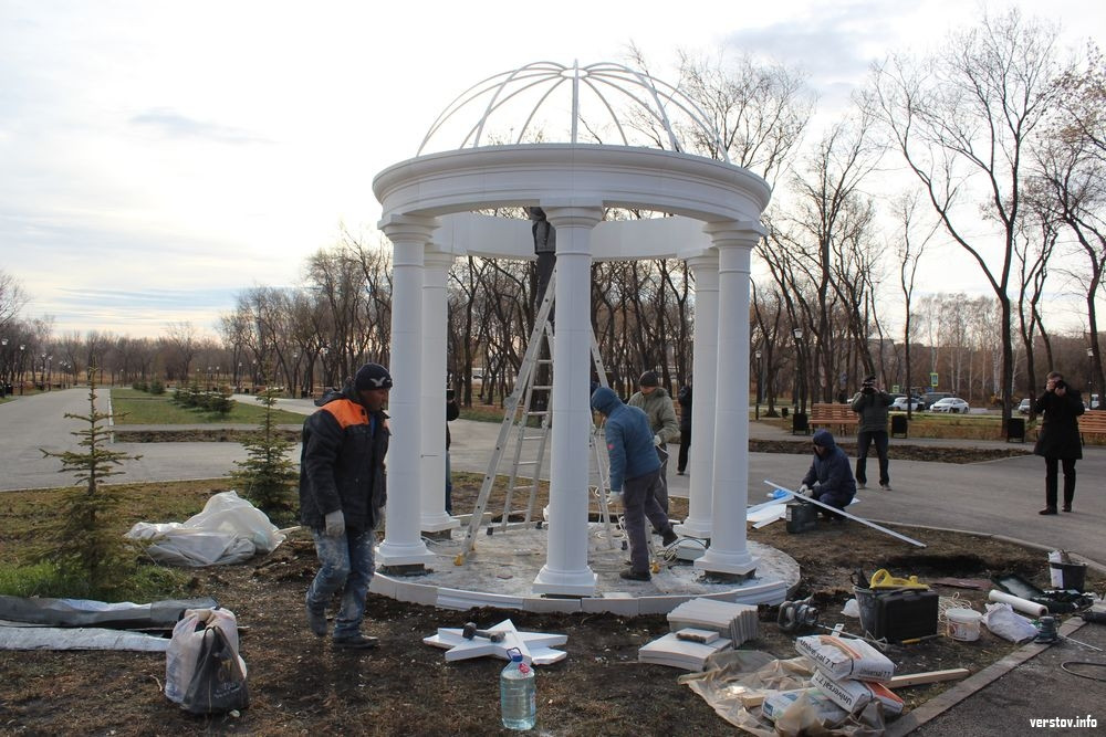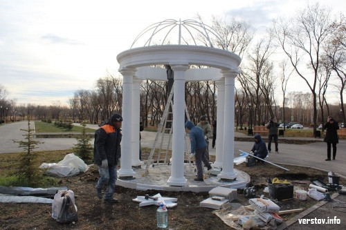К слову, на этой неделе деревья уже высадят. Как отметил Россол, работы по установке ротонды уже подходят к концу. Купол постройки будет подсвечиваться в тёмное время суток. Также в парке у Вечного огня появится не только новая детская площадка, но и кафе, а также пункт проката.