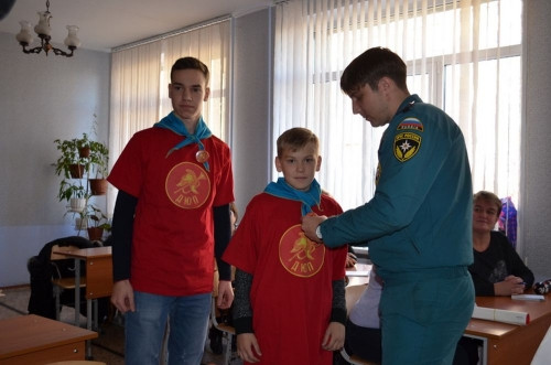 Заместитель председателя «Всероссийской добровольной пожарной охраны» Татьяна Любимова напомнила школьникам о предстоящих конкурсах и что необходимо сделать ребятам, чтобы они смогли принять участие в них. После беседы, командирам дружин вручили знаки отличия. Отметим, что дизайн был разработан еще в 1975 году в магнитогорском доме противопожарной обороны.