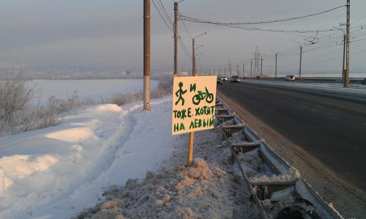 По словам магнитогорца, он уже не первый раз обращается к чиновникам по поводу пешеходных дорожек на Казачьей переправе. Еще в прошлом году выяснилось, что дорожники просто игнорируют пешеходную часть, очищая от снега только автомобильную дорогу. Не желая мириться с этим, велоактивист, благодаря которому вся Россия узнала о суровой магнитогорской велодорожке, даже смастерил шуточный знак, который установил на Казачьей переправе. По словам, Добровольского, чиновники так и не сделали выводов из прошлогодних ошибок.