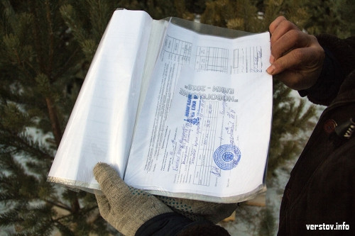 И все-таки корреспонденту «Верстов.Инфо» удалось найти точку, где разрешение на продажу новогодних деревьев были – на трамвайной остановке «Куранты». Причём официальная бумага была на видном месте. Продавец без всяких вопросов разрешил посмотреть и полистать небольшую стопку документов с кучей печатей. Из них стало известно, что сосны привезли из Аскарово. Каждое деревце, независимо от качества и размера, обошлось продавцу в 94,5 рубля. Ценник же здесь как и на других базарах – от 300 рублей. Получается, что по пути из леса в Магнитогорск каждая ёлочка дорожает минимум в три раза.