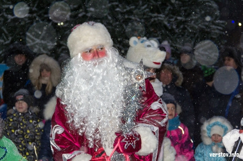 Несмотря на то, что вчера шел снег, на открытие ледового городка пришли как взрослые, так и детвора. Народ развлекали аниматоры – Елка, Белый и Бурый медведи. Когда настала пора зажигать огни на главной елке Орджоникидзевского района, позвали на помощь «живых» Деда Мороза и Снегурочку.