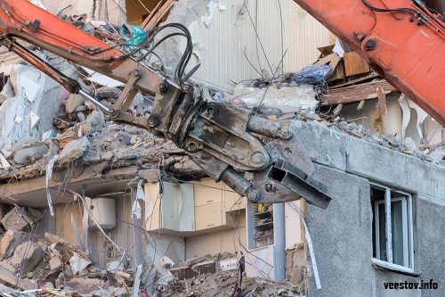 Добавим, что специалисты «Р. В. С.» уже полностью демонтировали седьмой и восьмой подъезды. Сейчас с места демонтажа вывозится строительный мусор.
