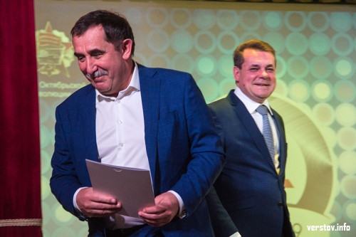 После этого градоначальник вызвал на сцену Олега Лакницкого и вручил ему благодарственное письмо, а на память тресту он подарил картину. Что, правда, на ней – неизвестно. Картина была упакована. Единственное, Бердников упомянул, что на картине первые годы, первые дома, которые художник восстановил из архивных материалов.