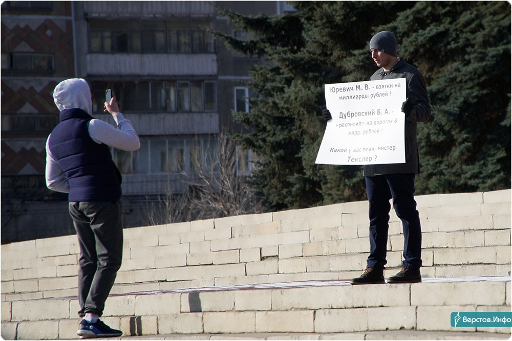 Против коррупции! Текслера в Магнитке встречали одиночным пикетом