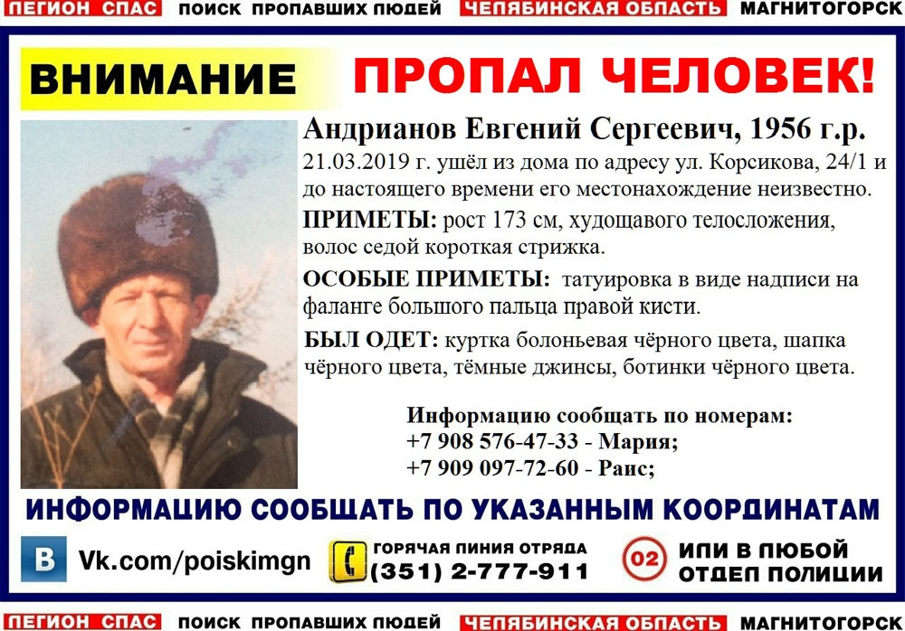 Магнитогорск. Информация о пропавших жителей города опубликовали в группе «Легион-СПАС».