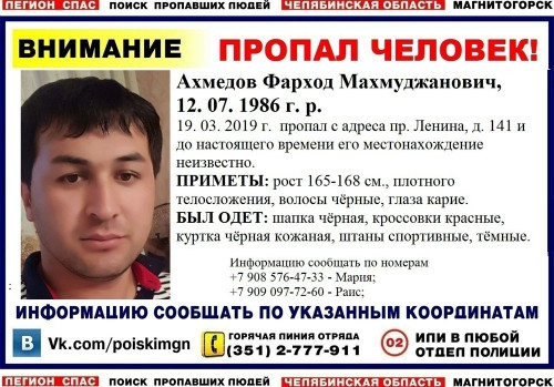 32-летний Фарход Ахемдов ушел из дома № 141 на проспекте Ленина 19 марта. С тех пор о нем ничего неизвестно.