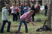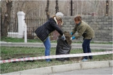 Получив свои грабли, Сергей Бердников отправился в северную часть сквера, ближе к ДК имени Орджоникидзе, сгребать сухие ветки и прошлогоднюю листву с одного из газонов. Убирать собранную в кучи Сергеем Бердниковым прошлогоднюю листву пришли председатель Горсобрания Александр Морозов и депутат Вячеслав Бобылев.