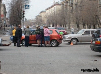 Сегодня днём на перекрестке проспекта Ленина и улицы Комсомольской произошло столкновение автомобилей, подпортившее настроение некоторым участникам свадебного разъезда.