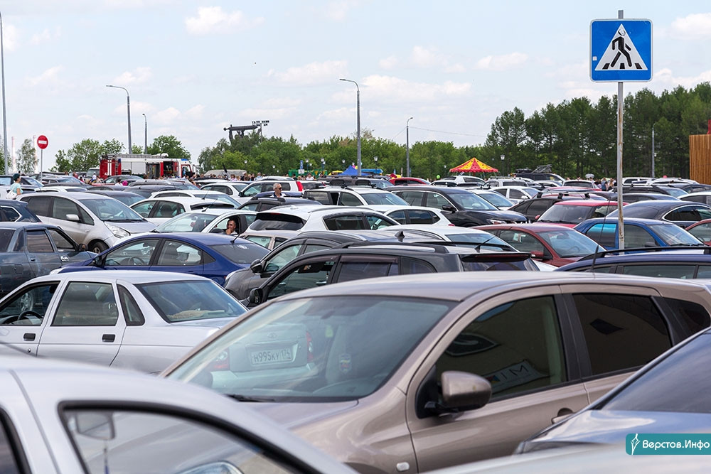 С погодой повезло – в первый день лета дул легкий ветерок и жарило солнце. Автостоянка перед ТРК была забита автомобилями под завязку. Не успевает водитель выехать с парковки, как на его место пытаются в прямом смысле протиснуться сразу несколько автомобилей. Из машин выскакивает ребятня, следом – родители. Дети тут же мчатся в парк у Вечного огня, где для них уже традиционно медиа-группа «Знак» приготовила большой праздник.