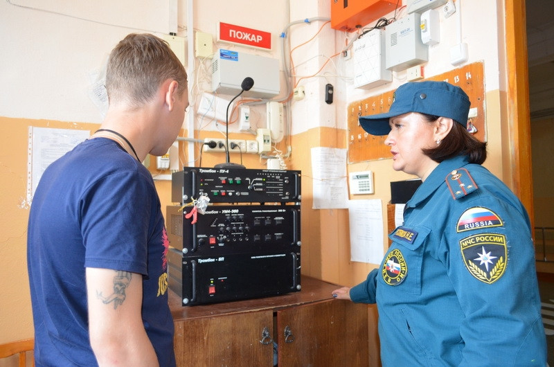 Проверка школы № 9 начинается с первого этажа здания: стоят ли тепловые датчики на кухне, не загромождены ли эвакуационные выходы в помещениях школы, которые должны быть абсолютно свободными, запоры на дверях эвакуационных выходов должны обеспечивать возможность их свободного открывания изнутри без ключа. Инспектор проверяет огнетушители, нумерацию на них. Особое внимание уделяют в ходе такой проверки исправности автоматической пожарной сигнализации и системы оповещения и управления эвакуации людей в случае пожара, документацию, относящуюся к пожарной безопасности.