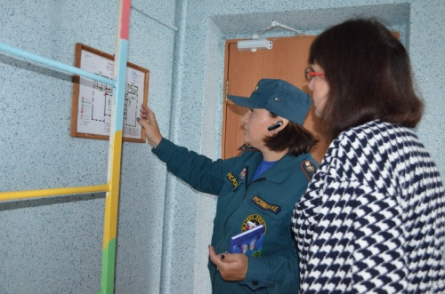 Не менее строгий осмотр помещений проходит и в детском саду №76 на улице Первомайской. Инспектор заглянула за каждую дверь и даже в подвал. Пока сотрудник МЧС проверяет эвакуационные выходы в группах, за ней также пристально следят маленькие воспитанники садика. Ребята радостно приветствуют гостью, а в процессе проверки Наталья Егоровна успевает даже пообщаться с дошколятами и ответить на их вопросы. Все меры пожарной безопасности в детском саду соблюдены на «отлично».
