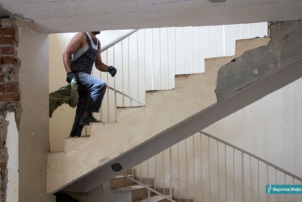 Остались только несущие стены. На Доменщиков идет реконструкция здания под новый детсад