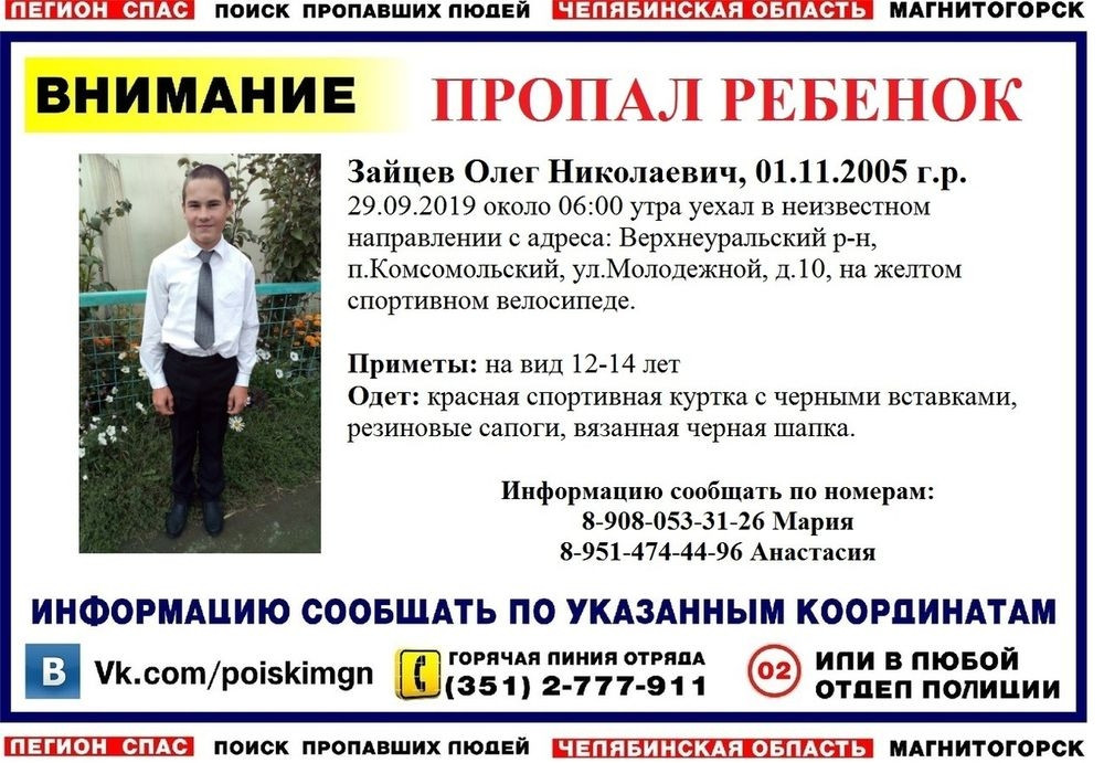 13-летний парень уехал из дома с улицы Молодежной в поселке Комсомольский утром 29 сентября. С того момента никто мальчишку не видел, друзья и родные не предполагают, куда он мог направиться.