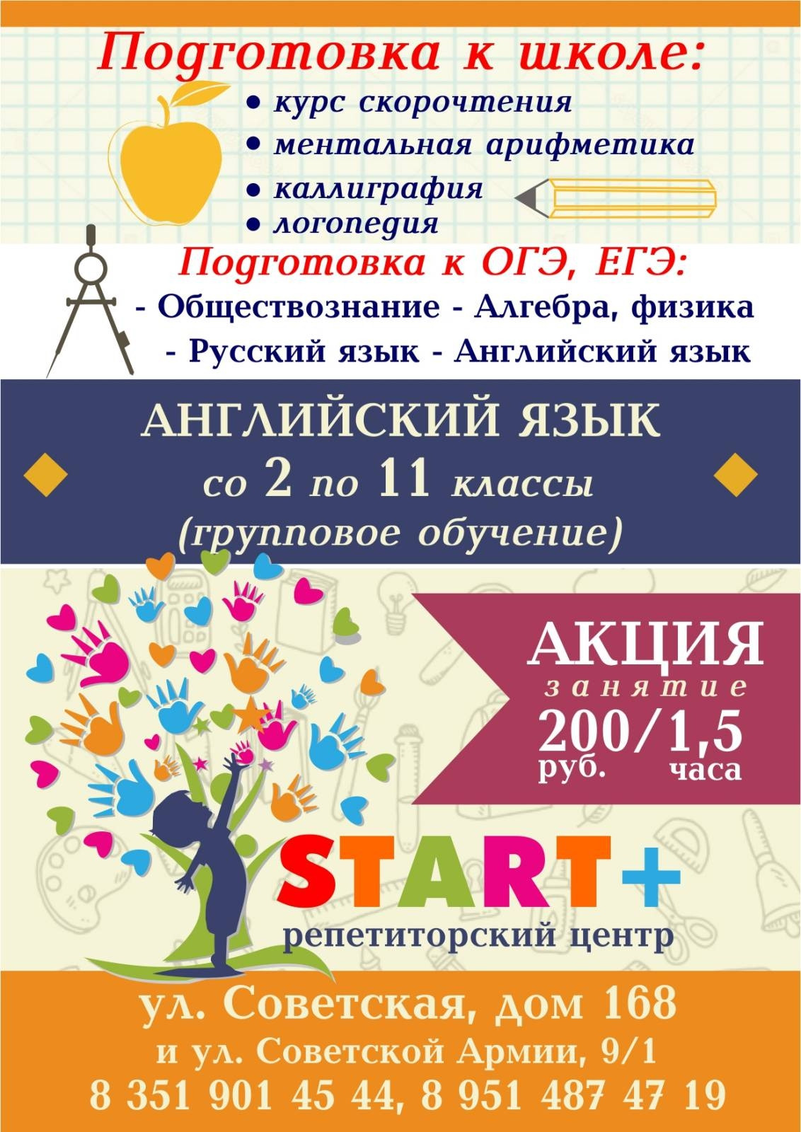 Магнитогорск. Репетиторский центр «START+» проводит набор учеников с 1 по 11 класс в группы подготовки к ОГЭ, ЕГЭ, ВПР по обществознанию, алгебре и физике, английскому и русскому языку.