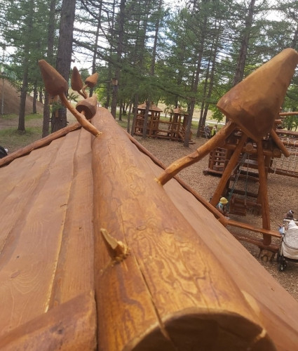 Директор МАУ «Парки Магнитки» Александр Иванов рассказывает, что каждое утро сотрудники обследуют оборудование и находят поломки. То доски отломают, то перекладины, теперь вот разобрались с сучками-грибами, которые служили дополнительным декоративным украшением.