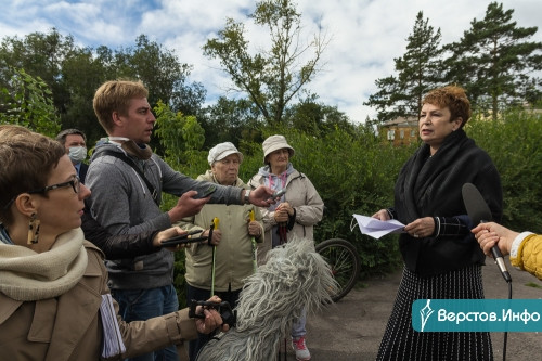Помимо журналистов чиновников ожидал и актив городского совета ветеранов. Правда, они старались особо не мелькать и ждали в глубине сквера. Но как только Владимир Астраханцев и Елена Скарлыгина готовы были представить новый дизайн-проект, активисты тут же окружили представителей СМИ и начали увлеченно что-то говорить. Увы, разобрать, о чем они говорили, было трудно, так как начали активисты хором. Журналисты попросили их немного угомониться, чтобы дать возможность послушать что же скажет глава Ленинского района Елена Скарлыгина. На какое-то время пенсионеры, к счастью, замолчали, а вносить свои идеи и предложения по будущей реконструкции парка стали только после пресс-подхода.