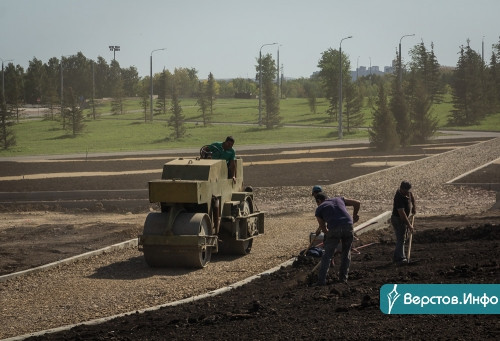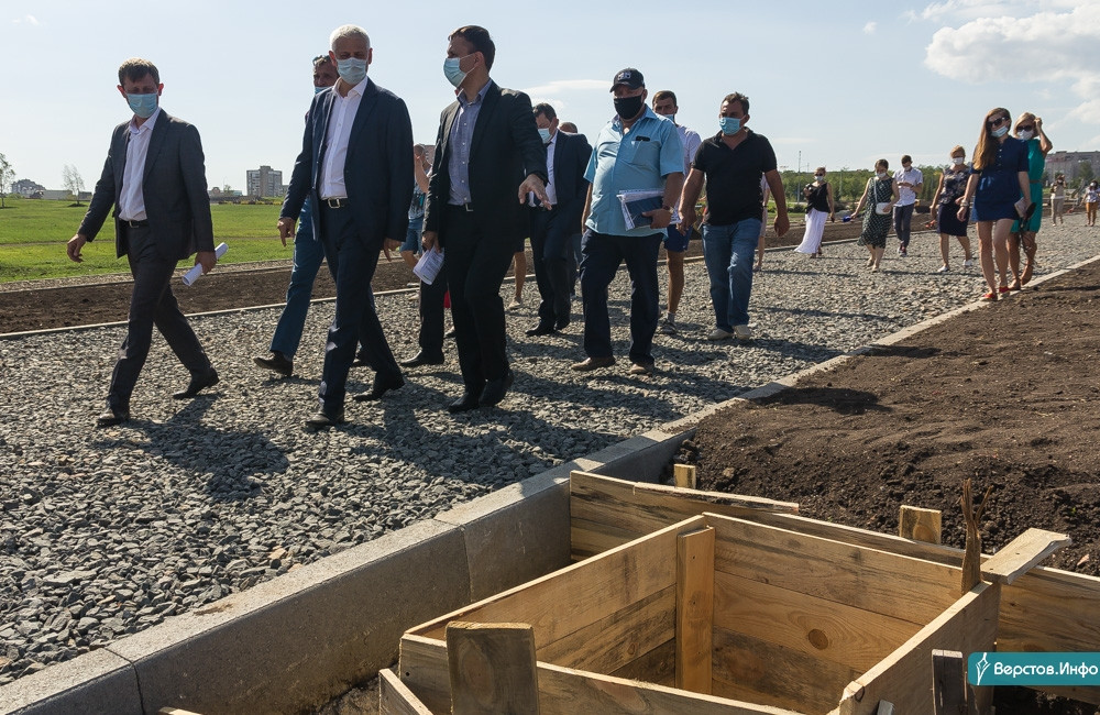 Магнитогорск. Вчера, 2 сентября, глава Магнитогорска Сергей Бердников проинспектировал работы по благоустройству северной части парка У Вечного огня.