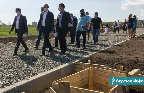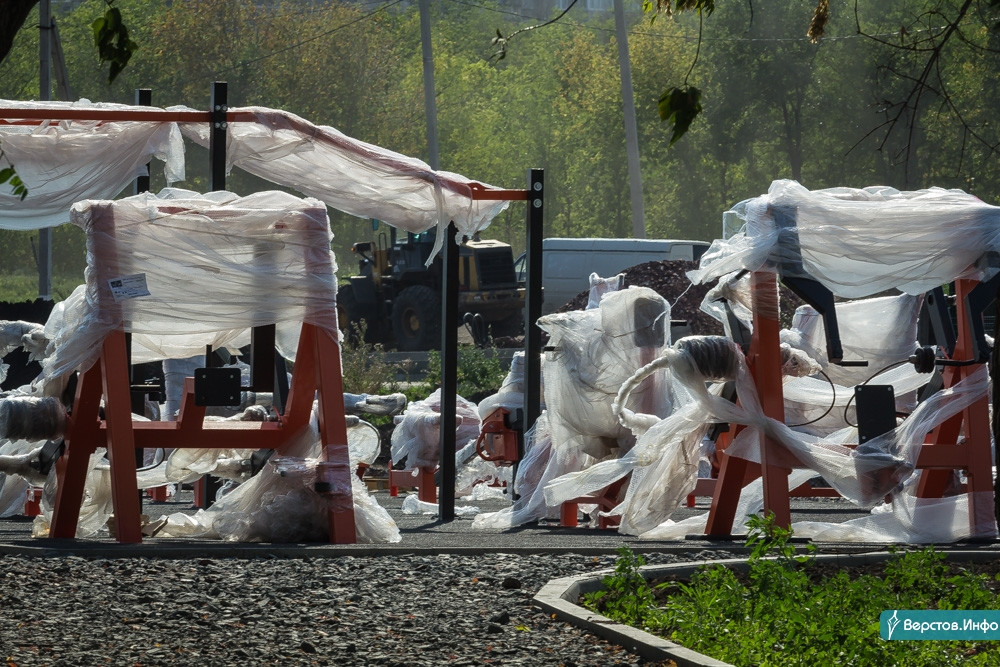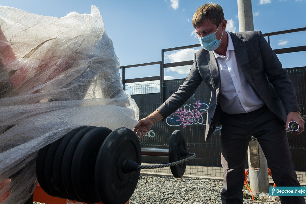 В первую очередь директор МАУ «Парки Магнитки» Александр Иванов провел градоначальника на спортивную площадку, где уже уложили слой специального резинового покрытия и поставили десять тренажеров. Бердников поинтересовался у Иванова, не будут ли некоторые нерадивые горожане красть элементы спортивного снаряжения. Иванов заверил, что это учли, и вместо цепи, как в Экологическом парке, на снаряды установили железные тросы, которые распилить намного сложнее.