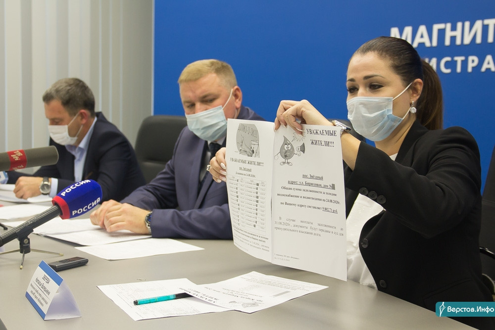 На пресс-конференцию представительница ресурсной организации принесла бланки уведомлений, которые они рассылают должникам и крепят на досках объявлений.