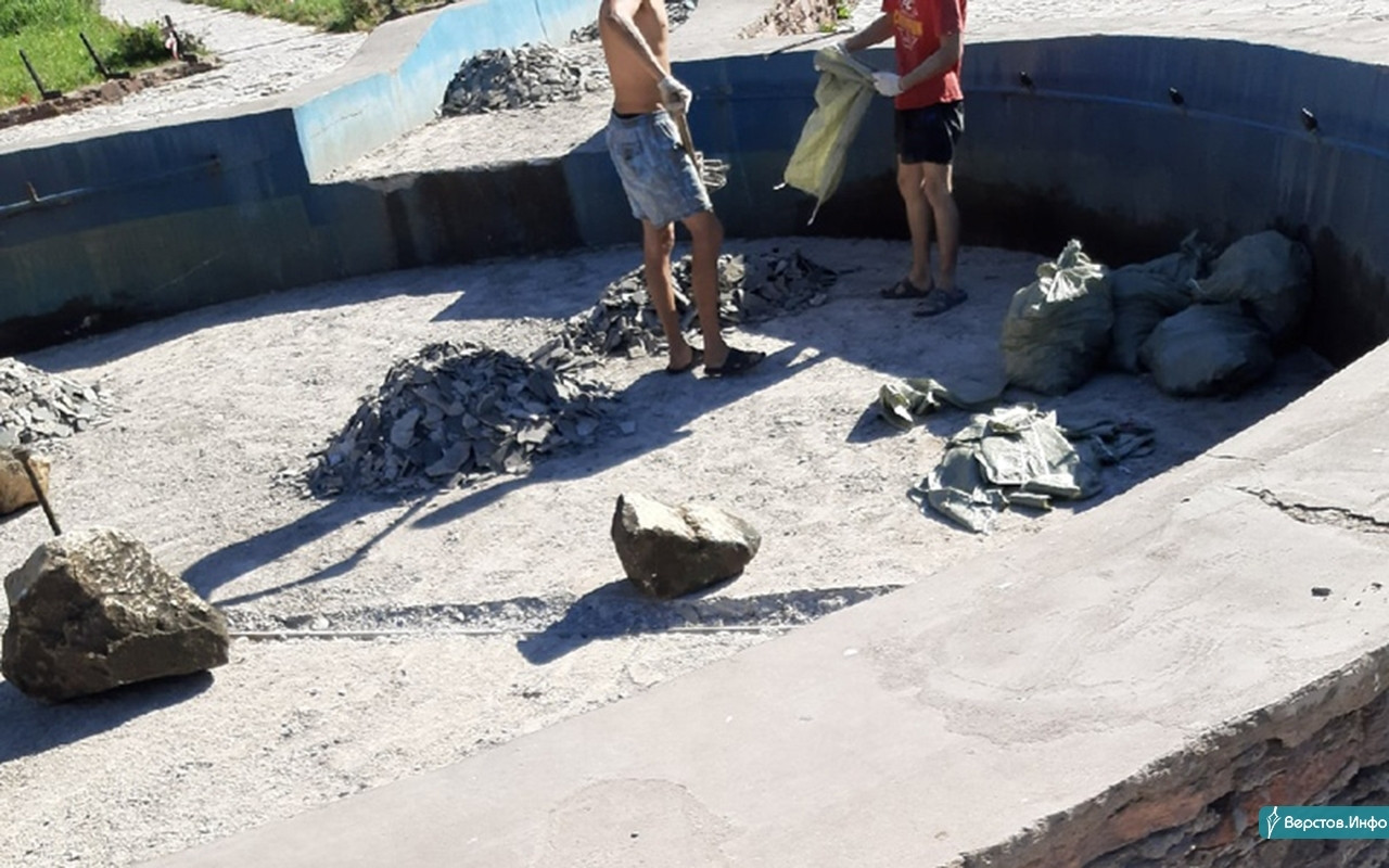 Аукцион выиграло МП «Магнитогорскинвестстрой». Подрядчику предстояло отремонтировать чашу фонтана и парапет, привести в порядок скамейки и покрасить памятник. Восстановить тротуар, разбить газоны, высадить 10 деревьев или кустарников и 10 елей, восстановить освещение. На дворе октябрь, но сквер до сих пор не отремонтирован.