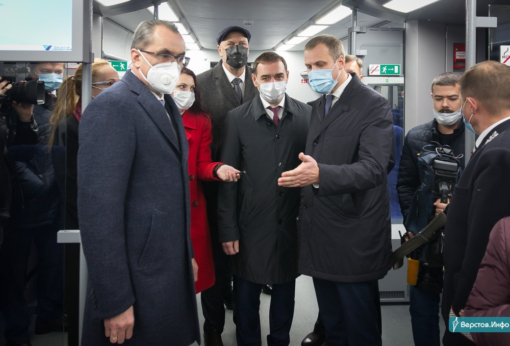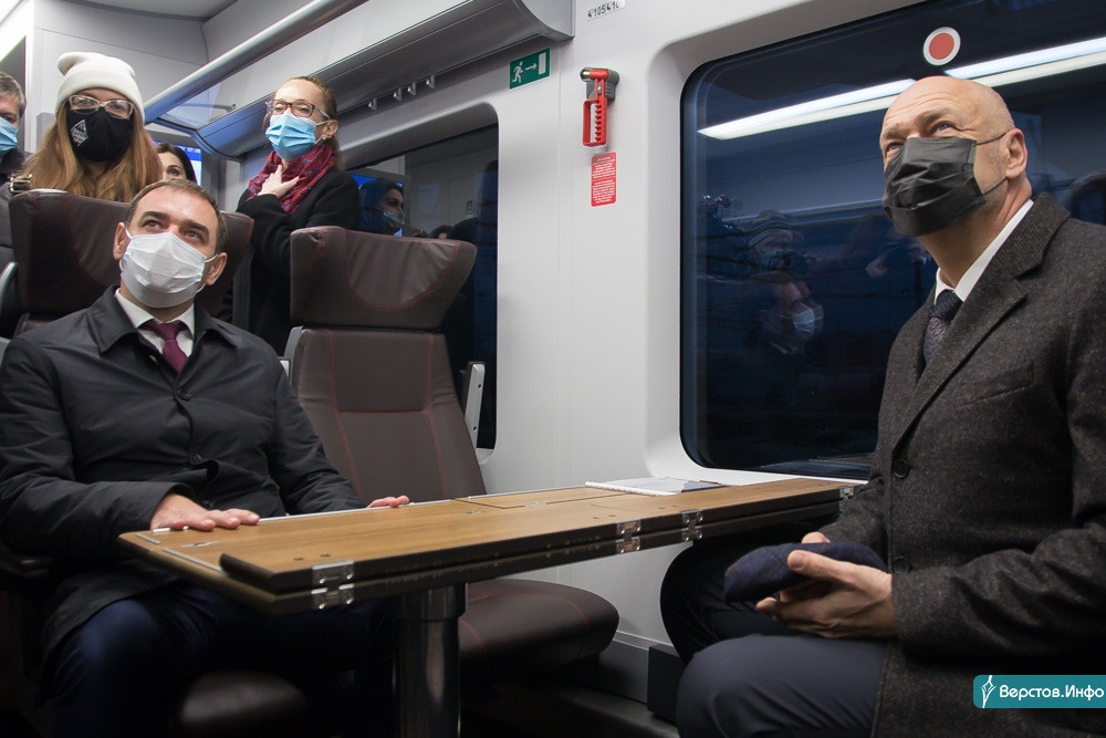 Затем Анатолий Храмцов провел челябинских гостей по «Ласточке». Показал им комфортабельные вагоны, стойки для хранения багажа, познакомил с машинистами, презентовал въезд для маломобильных людей с местами крепления для инвалидных колясок… Гости были впечатлены.