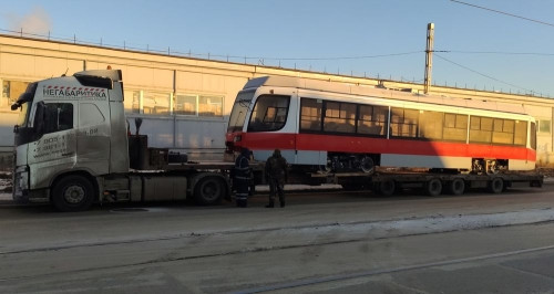 Магнитогорск. В Магнитогорск прибыл еще один новый трамвай из Усть-Катава.