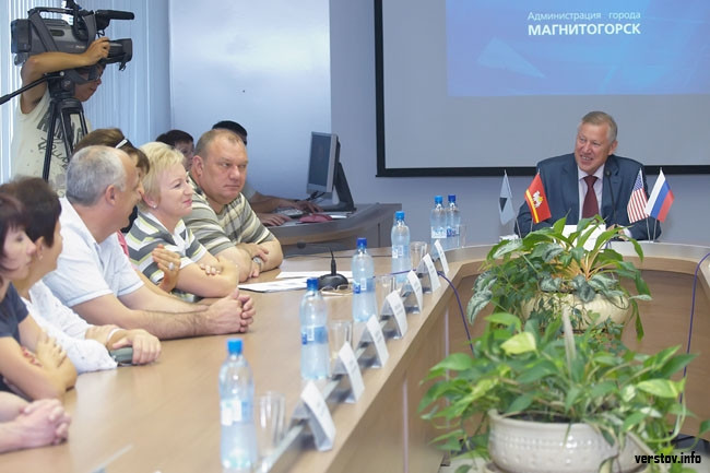 В ходе беседы магнитогорский мэр выступил с кратким докладом, сопровождаемым слайд-шоу, в котором остановился на основных социально-экономических показателях развития города на современном этапе. Основное внимание было уделено строительству и модернизации медицинских объектов, благо Магнитке в этом плане есть, чем похвалиться: строительство поликлиники в южных районах города и ПЭТ-центра, капитальная реконструкция первой городской больницы и так далее – перечень объектов явно впечатлил гостей.