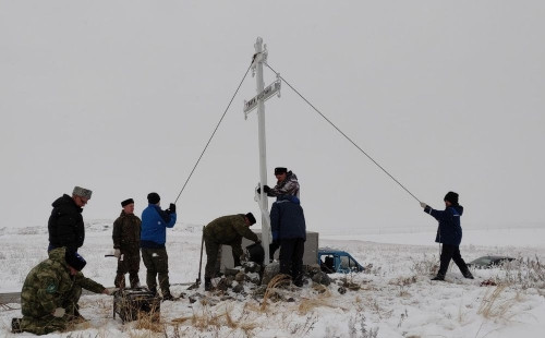 Магнитогорск. На месте спиленного вандалами креста появилось новое изваяние, его установили на собственные средства представители магнитогорского городского казачьего общества (МГКО) «Станица Магнитная».