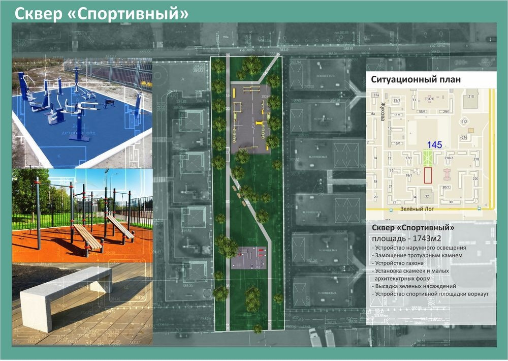 Речь идет о скверах, которые были отобраны по итогам сбора предложений от горожан. Это левобережный сквер имени П. И. Чайковского, сквер Трех поколений, сквер Спортивный (в 145-м микрорайоне, рядом со школой № 47) и сквер им. космонавта П. Р. Поповича (территория между домами № 52, 54, 56 на ул. Зеленый лог).