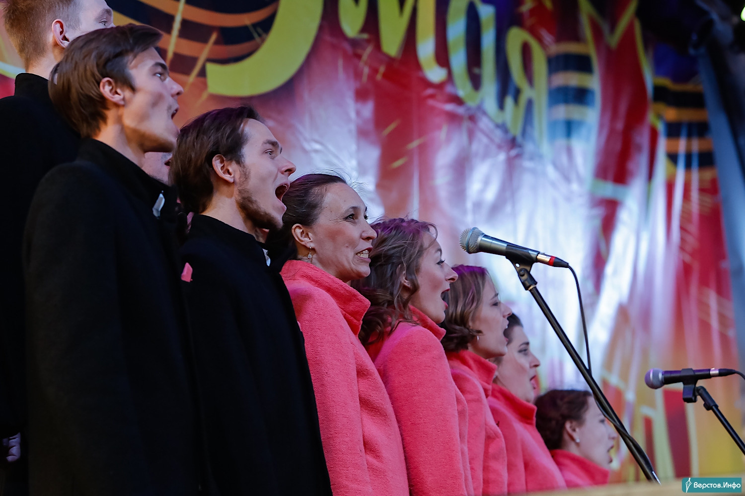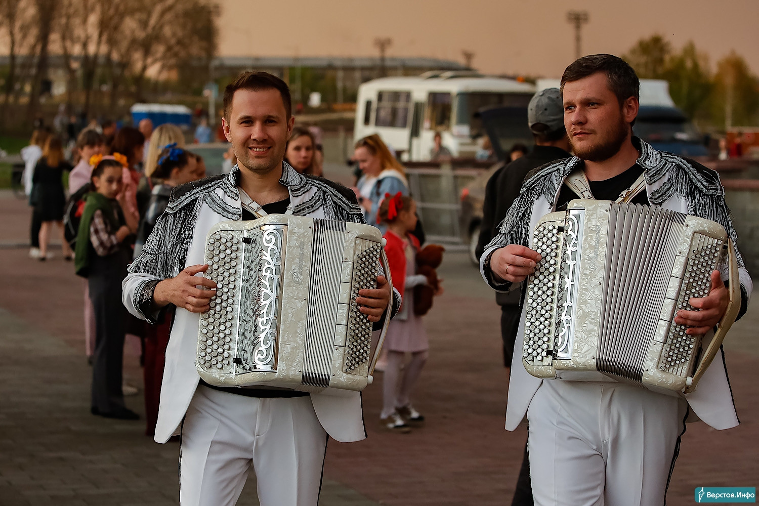 С 18:30 в парке У Вечного огня стартовал «Бал Великой Победы», организованный Магнитогорской епархией. Сразу после него зазвучала «Симфония Победы» – концерт, подготовленный местными творческими коллективами.