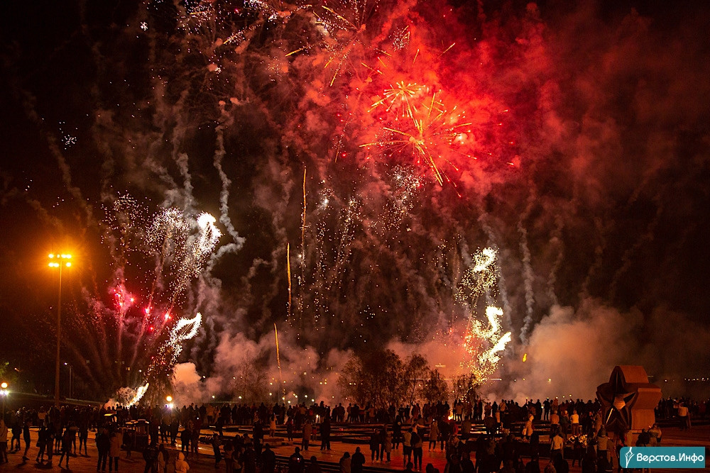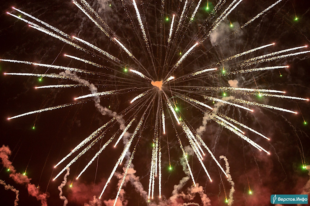 Закончился праздник красочным фейерверком. В прошлом году Владимир Путин присвоил Магнитогорску звание «Город трудовой доблести». В городе, удостоенном этого статуса, проводят публичные мероприятия и праздничные салюты 1 Мая (Праздник Весны и Труда), 9 Мая (День Победы), а также в День города.