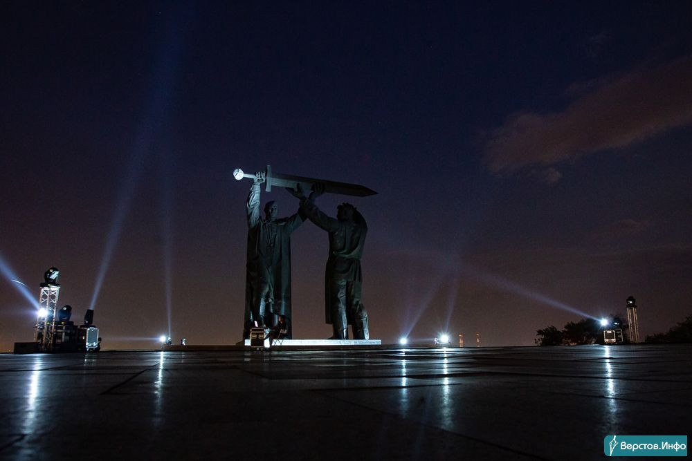 Примерно с 10 часов вечера около монумента «Тыл и Фронт» включили сразу несколько прожекторов, которыми с нескольких сторон подсветили одну из главных достопримечательностей Магнитогорска. Интересно, что далеко не все гулявшие в парке У Вечного огня магнитогорцы знали об акции. Поэтому многие подходили и спрашивали, что происходит около монумента, и даже интересовались, будет ли концерт.