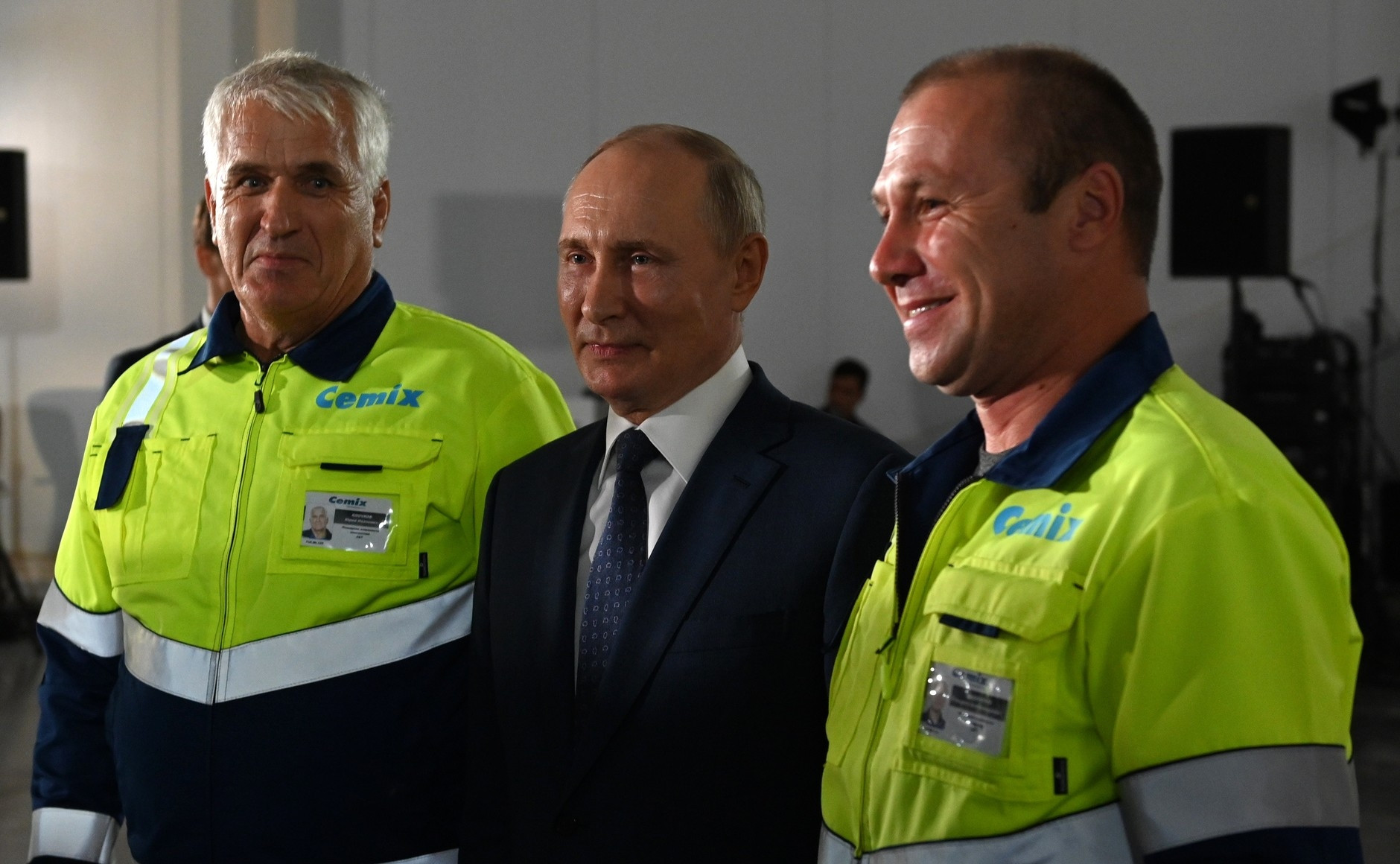 Здесь Владимир Путин принял участие в церемонии запуска первой очереди завода по производству сухих строительных смесей «Цемикс» австрийского холдинга «Ласселсбергер».