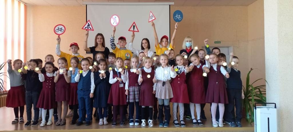 В торжественной обстановке первоклассникам вручили световозвращающие значки, ребята дали клятвенное обещание соблюдать Правила дорожного движения, после чего им присвоили звание юных пешеходов.