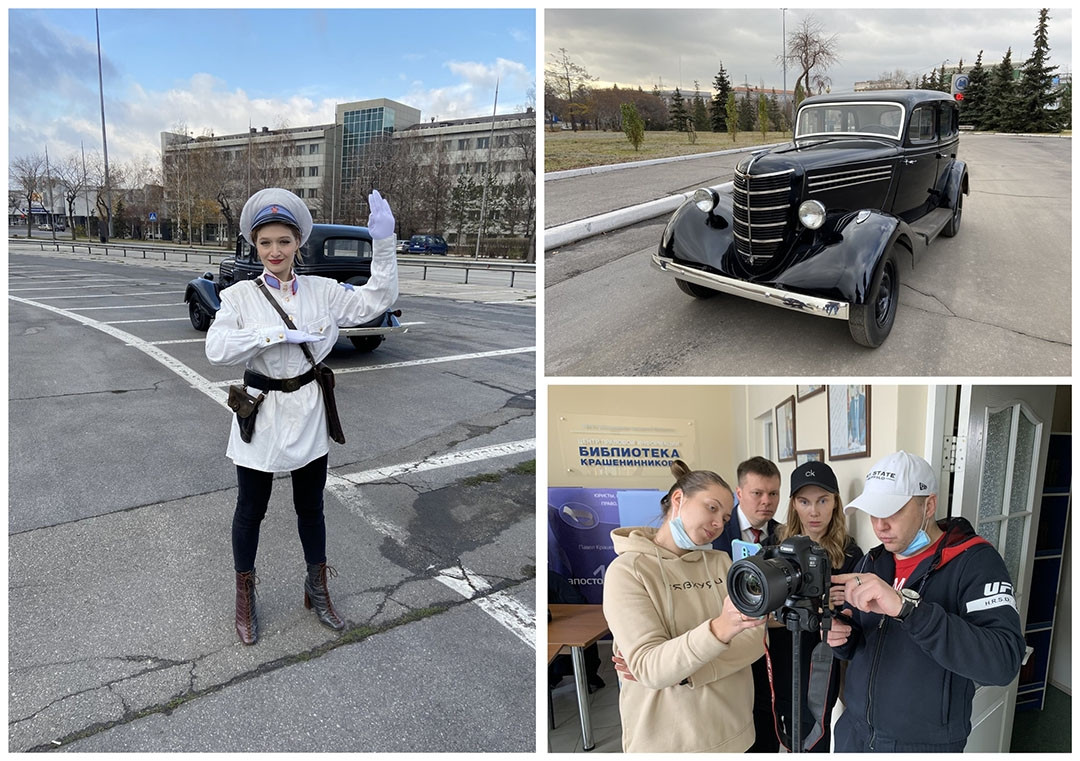 Съемки проходят в различных местах: в библиотеке, производственных цехах, спортивном зале, но большинство – на свежем воздухе, и не только на территории города. Впереди, к примеру, съемки в Верхней Пышме. Именно там молодые металлурги отыскали еще один необходимый ретро-автомобиль.