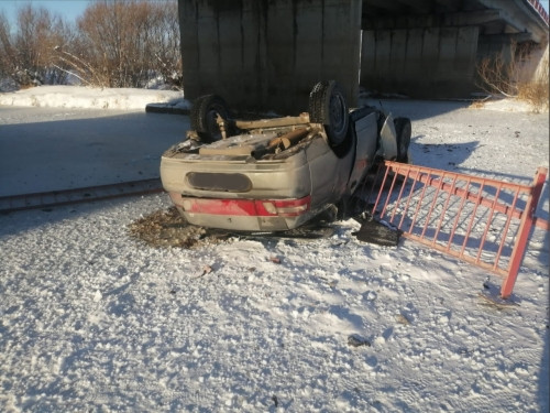 Как рассказали в пресс-службе областной ГИБДД, 23-летний водитель автомобиля «ВАЗ-21101» не справился с управлением. Пробив ограждение моста, машина упала на лед реки Гумбейки.