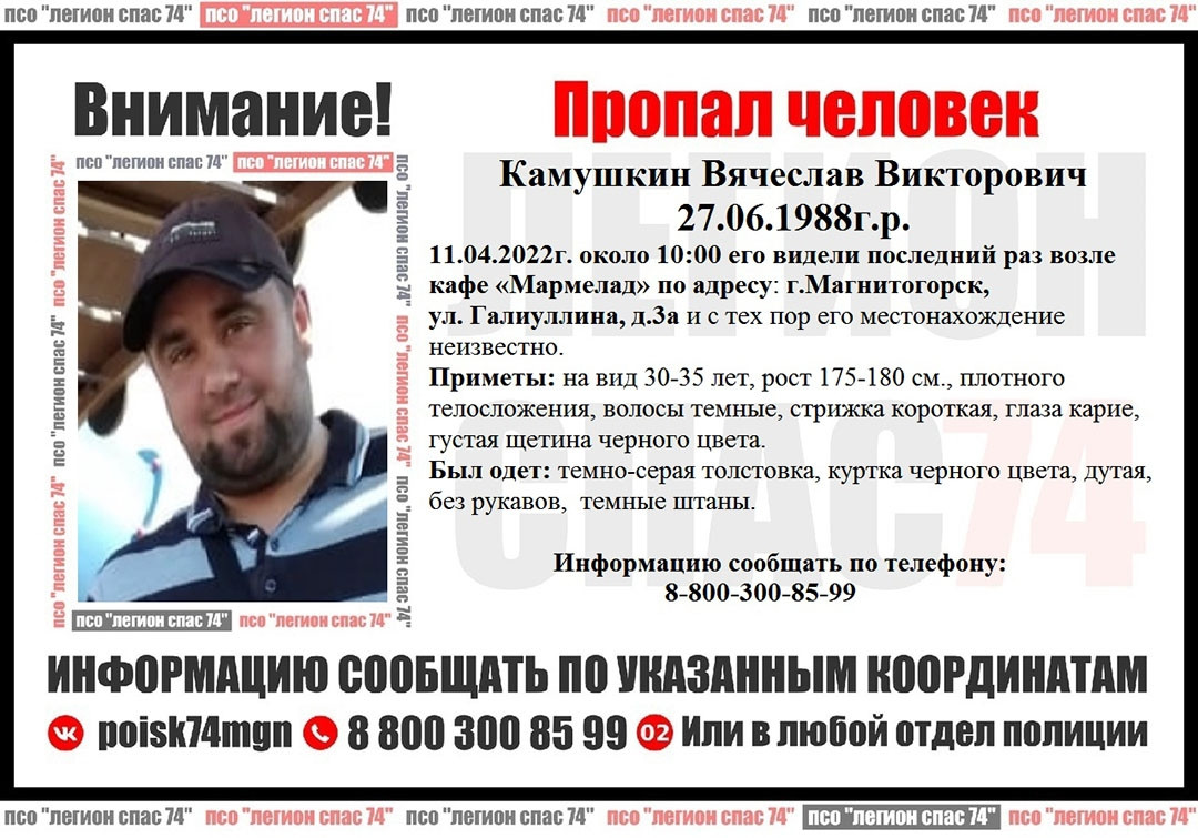 33-летнего Вячеслава Камушкина последний раз видели около кафе «Мармелад» (ул. Галиуллина, 3а) 11 апреля около 10 часов. С тех пор его местонахождение неизвестно.