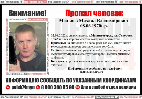 51-летний Михаил Мальцев 2 апреля ушел из дома № 142 на улице Суворова. С тех пор его местонахождение неизвестно.