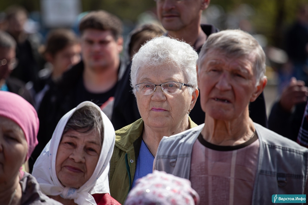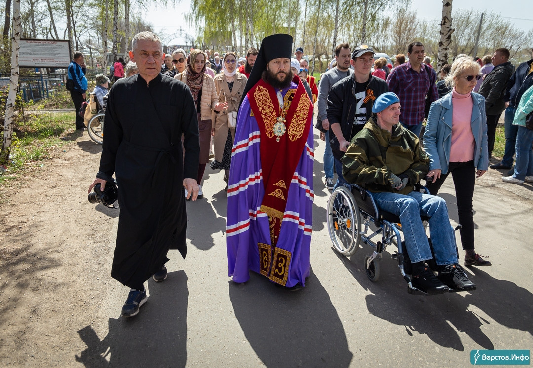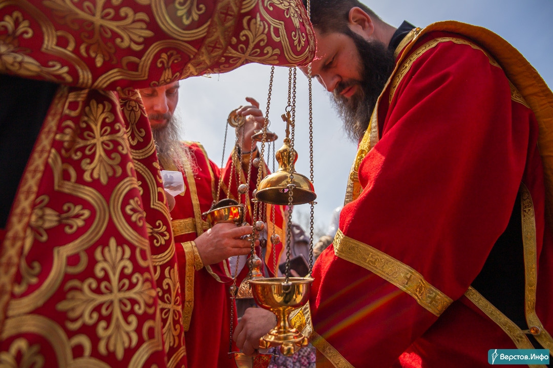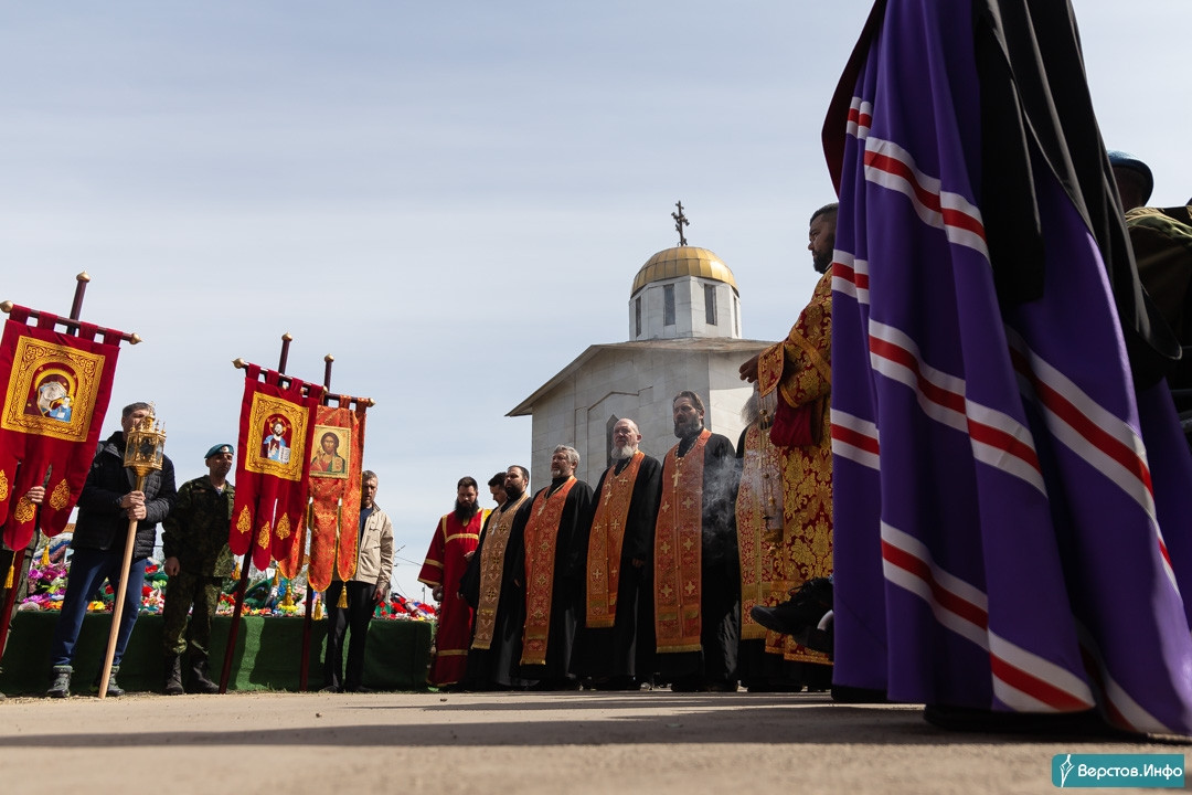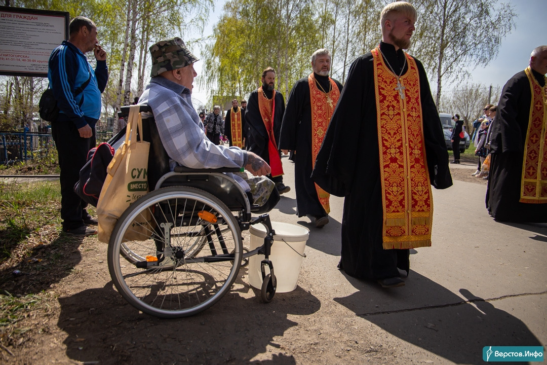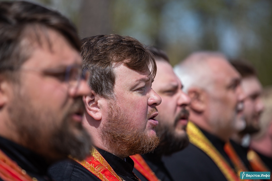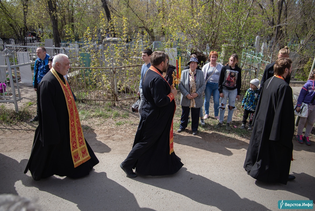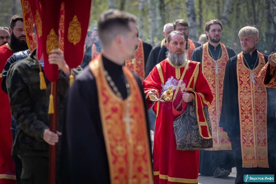 В два часа дня крестная процессия во главе c епископом Магнитогорским Зосимой двинулась в сторону главной площади кладбища. Запел хор. Горожане, возвращающиеся с погоста, молча расступались, дабы не мешать крестному ходу.