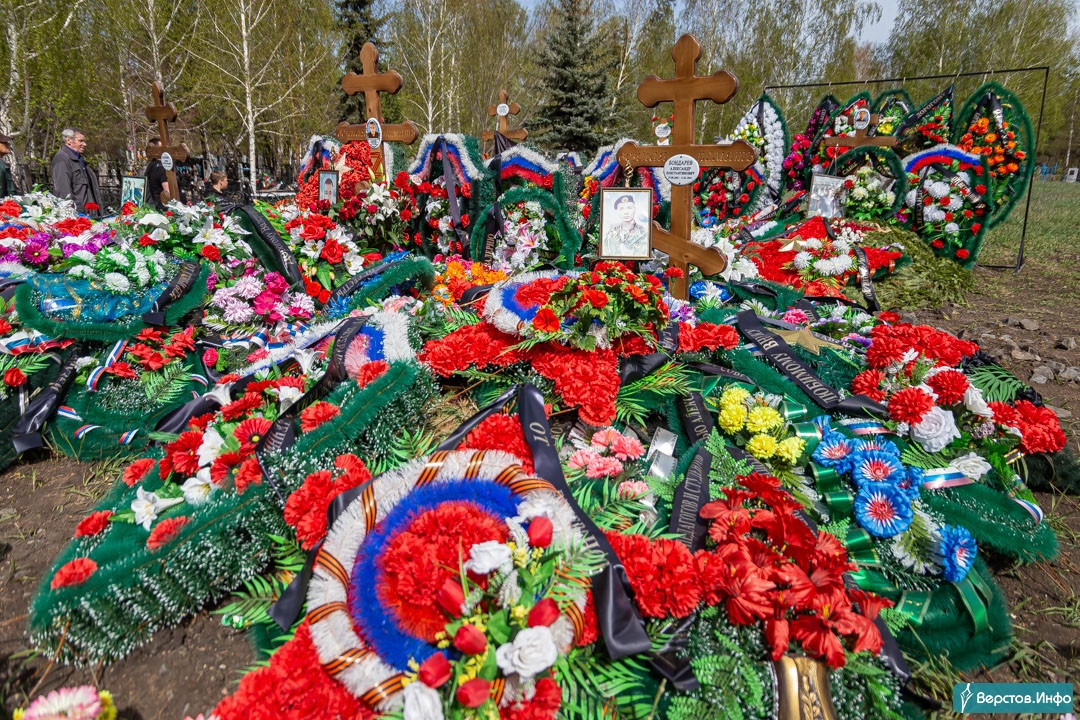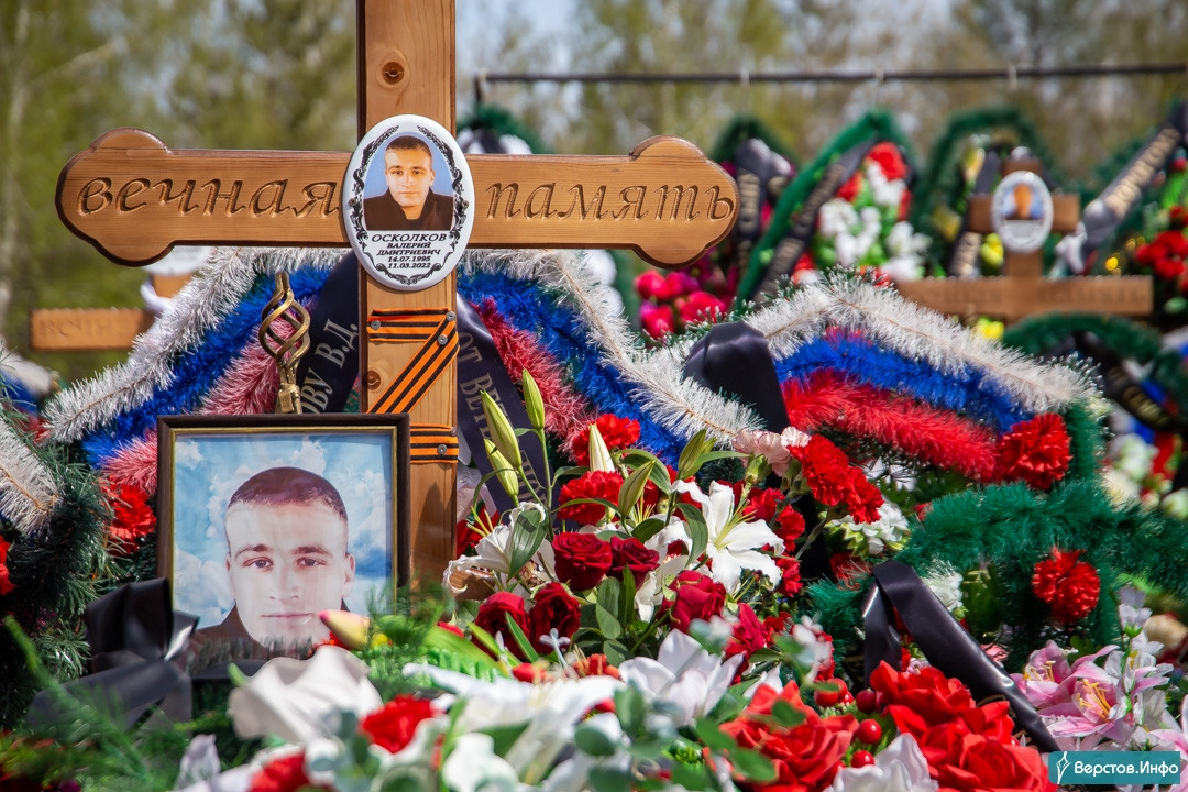 Затем священнослужители и верующие пошли в сторону часовни Святого великомученика Георгия Победоносца, который построили в 2004 году благодаря депутату Законодательного собрания Челябинской области Дмитрию Жукову. Возле этой часовни – шесть свежих могил магнитогорцев, погибших во время специальной военной операции на Украине. Тут теперь покоятся Данил Василенко, Валерий Осколков, Александр Бондарев, Максим Гаганов, Алексей Кузьмин и Александр Коновалов.